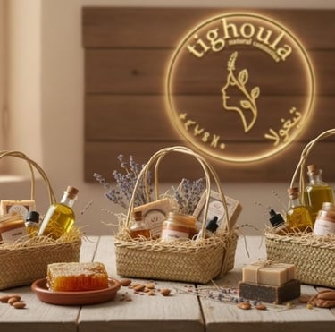 مجموعة متكاملة من الزيوت والكريمات والماسكات والصابون الطبيعي، مصنوعة من مكونات محلية نقية مثل الأركان، السدر والأعشاب السوسية. تُحضّر بعناية لضمان جودة عالية ونتائج فعّالة للعناية بالبشرة والشعر.